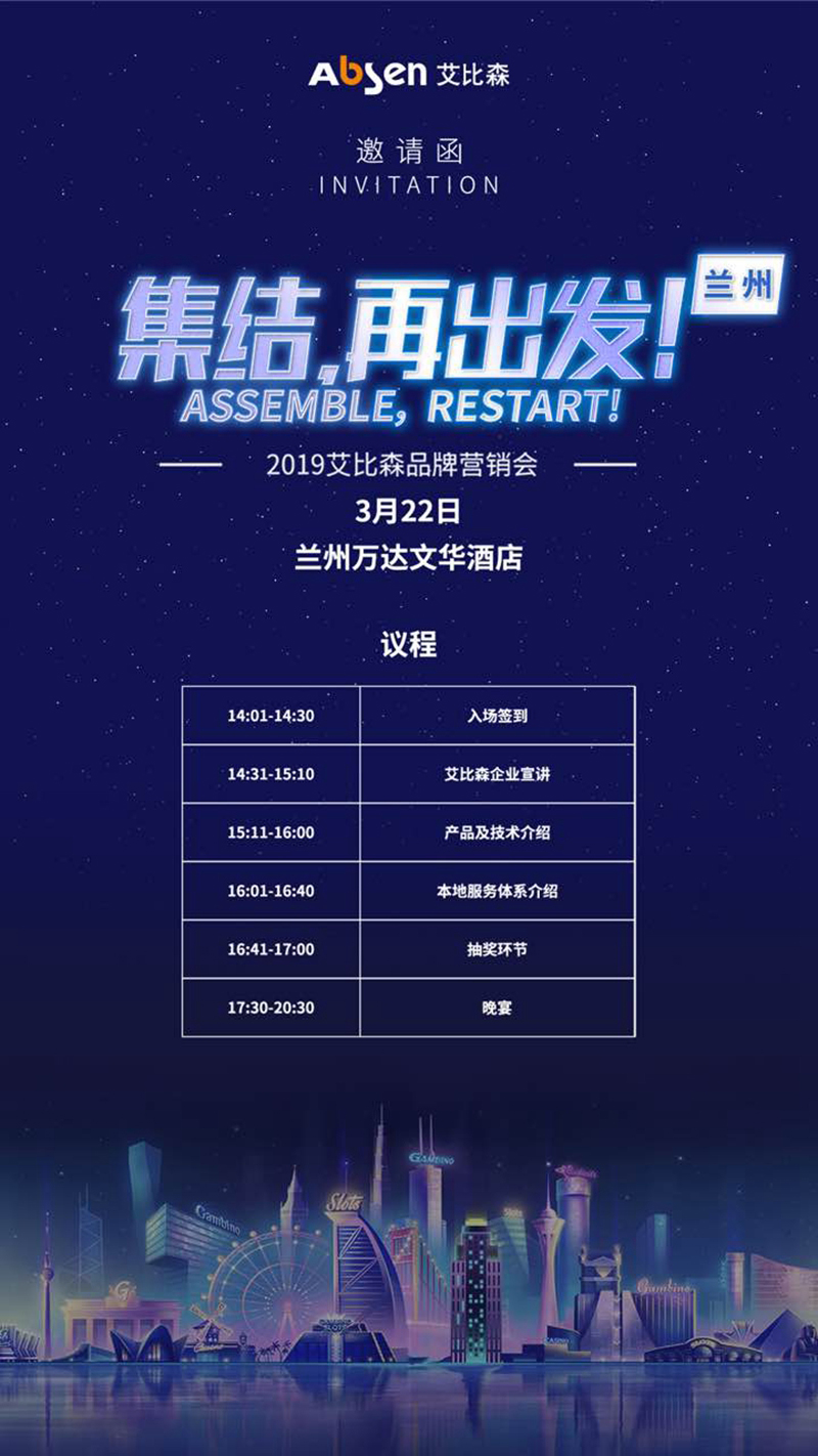 3月22日,艾比森誠邀您參加2019艾比森品牌營銷會·蘭州站,地點:蘭州萬達(dá)文華酒店。