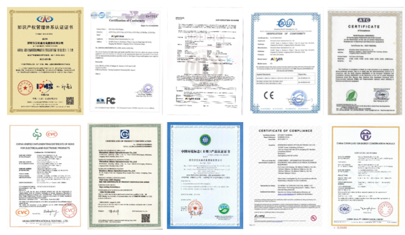 公司擁有海內(nèi)外眾多客戶,所有產(chǎn)品均符合當(dāng)?shù)厥袌?chǎng)準(zhǔn)入標(biāo)準(zhǔn),先后通過(guò)了CCC、RoHS、TUV、UL、CE、FCC、WEEE、CB、ETL、KC、EAC、光生物等各類認(rèn)證,致力于為客戶提供最優(yōu)質(zhì)的LED顯示產(chǎn)品。