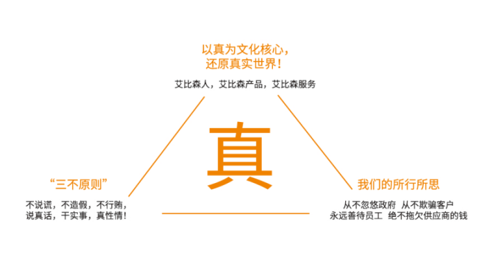 將艾比森打造成為中國(guó)民營(yíng)企業(yè)在全球范圍內(nèi)一個(gè)守誠(chéng)信、敢擔(dān)當(dāng)、不說(shuō)謊、不造假、不行賄的新商業(yè)文明典范,改變和影響中國(guó)的商業(yè)環(huán)境,引領(lǐng)大家改變到處說(shuō)謊、造假、行賄受賄的歪風(fēng)邪氣!這是作為一家中國(guó)的民營(yíng)企業(yè),作為一家上市公司,作為一個(gè)起源于中國(guó)然后走向世界的國(guó)際化公司該有的責(zé)任和擔(dān)當(dāng)!