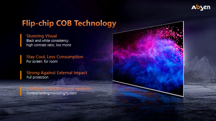 艾比森自2016年以來積極儲備布局倒裝COB技術,產品在國際和國內市場均有亮眼表現。本次發布會,艾比森推出了采用倒裝COB技術的會議一體機Absenicon X系列以及超高清家庭影院產品Absenicon M系列,進一步拓寬戶內小間距產品的應用領域。