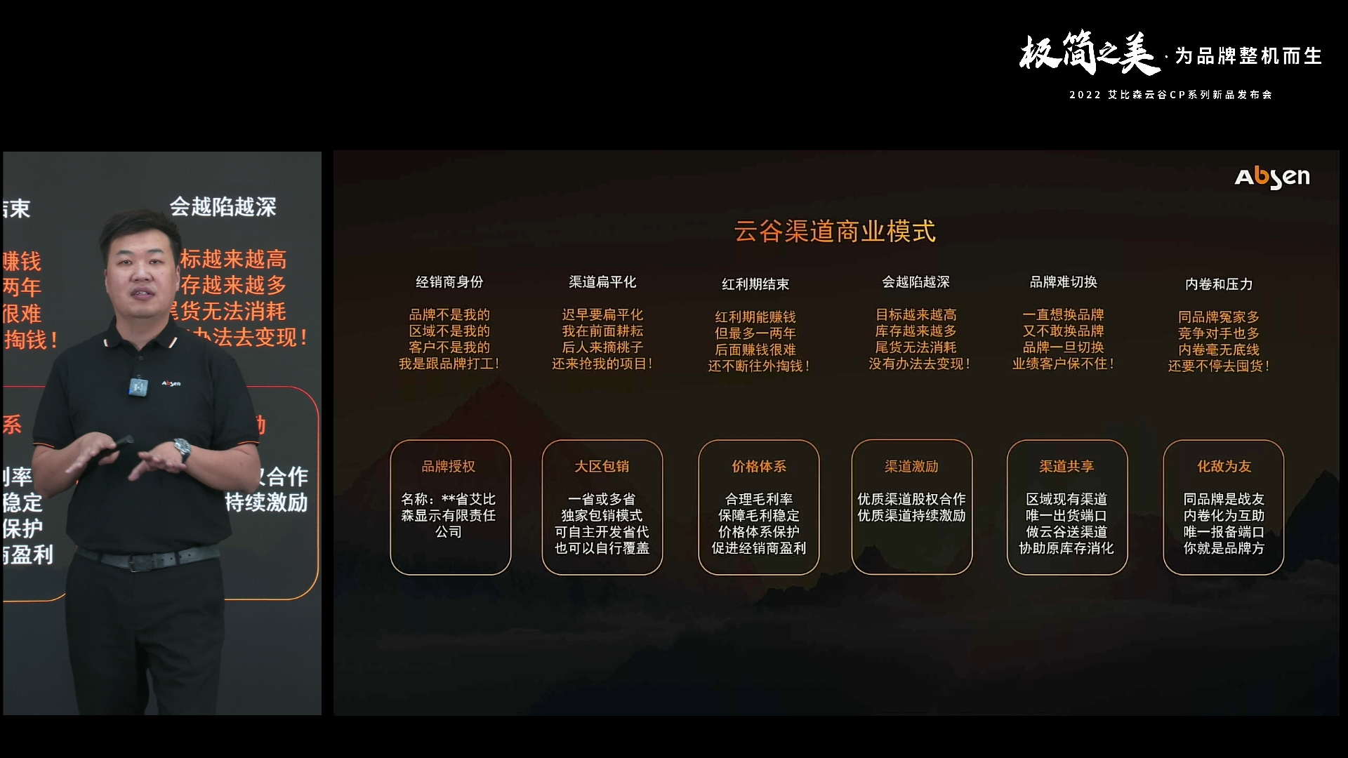 基于云谷CP系列作為渠道“流量整機”的定位,本次發布會,艾比森云谷渠道合伙人招募計劃正式發布,從品牌授權、大區包銷、價格體系、渠道激勵、渠道共享等方面解決傳統渠道痛點,創新商業模式,真正與渠道伙伴共享發展紅利。