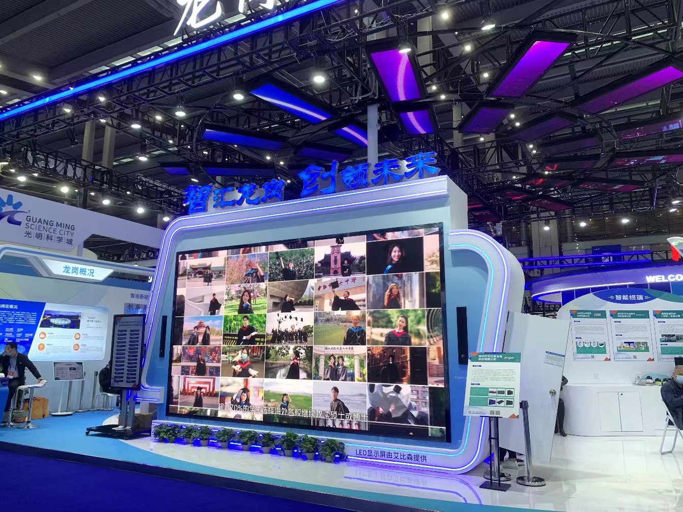 龍崗展區位于福田會展中心1號館,規劃了電子信息、先進制造、生物醫藥、新材料等行業分類區域。展位現場,艾比森戶內小間距高清LED大屏(HC 0.9 Pro II)吸引了眾多參展觀眾的目光。