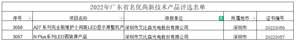 3.艾比森兩款產品入選“廣東省名優高新技術產品名單”