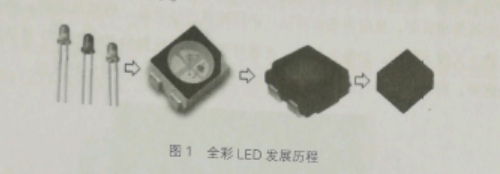 全彩LED封裝形式經歷了直插式LED( Lamp LED SMD LED),COB封裝也在近幾年進入市場,如圖1所示。