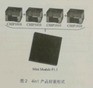 全彩LED表面貼裝的形式主要有PLCC-6、PLCC-4等,細分為正面發光的 TOP LED和線路板上封裝的 CHIP LED TOP LED也難以適應封裝尺寸的要求,因此逐漸轉向 CHIP LED。主流小間距LED顯示屏產品的點間距為P1.6、P1.5、P1.2,一般用CHIP1010、CHP0808規格的器件;部分實力廠家推出的1.0mm點間距的顯示屏已經達到量產水平,點間距為0.8mm的顯示屏已突破關鍵技術節點,點間距為P0.7、P0.6、P0.5的產品也陸續出現。由于尺寸越來越小、密度越來越高,顯示屏的貼片難度越來越大,防護性能越來越差,適應性越來越低,長期使用的穩定性和可靠性也越來越低。獨特的 Mini LED Module小間距LED顯示技術可完美解決上述問題。 Mini LED Module產品由兩組及以上RGB芯片集成封裝而成,每組RGB芯片單獨作為一個像素單元,獨立綁定到基板上,如圖2所示。Mini LED Module產品改變了像素單元的封裝方法,每個像素單元具有獨立的電性連接結構,與單個ChiPLED一致;像素單元的中心間距可調,可以根據客戶的要求生產不同間距的產品。