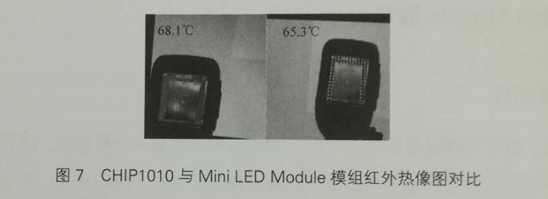 Mini LED Module產品增加了散熱通道,明顯減少了結構熱阻,因此可以比傳統CHIP1010產品維持更低的LED芯片結溫,如圖4、圖5所示。
